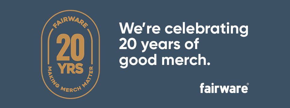 This year, we’re celebrating two decades of Fairware with a special 20th-anniversary logo. It’s a way to honour everything we’ve accomplished, the fun we’ve had, and the incredible people we’ve worked with along the way. From our early days with the cog to becoming leaders in sustainable merch, it’s been an amazing ride—and we’re just getting started.